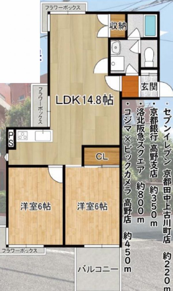 | 交通 | 叡山電鉄叡山本線 一乗寺駅 7分 | 専有面積 | 56.79u | バルコニー面積 | 4.00u |